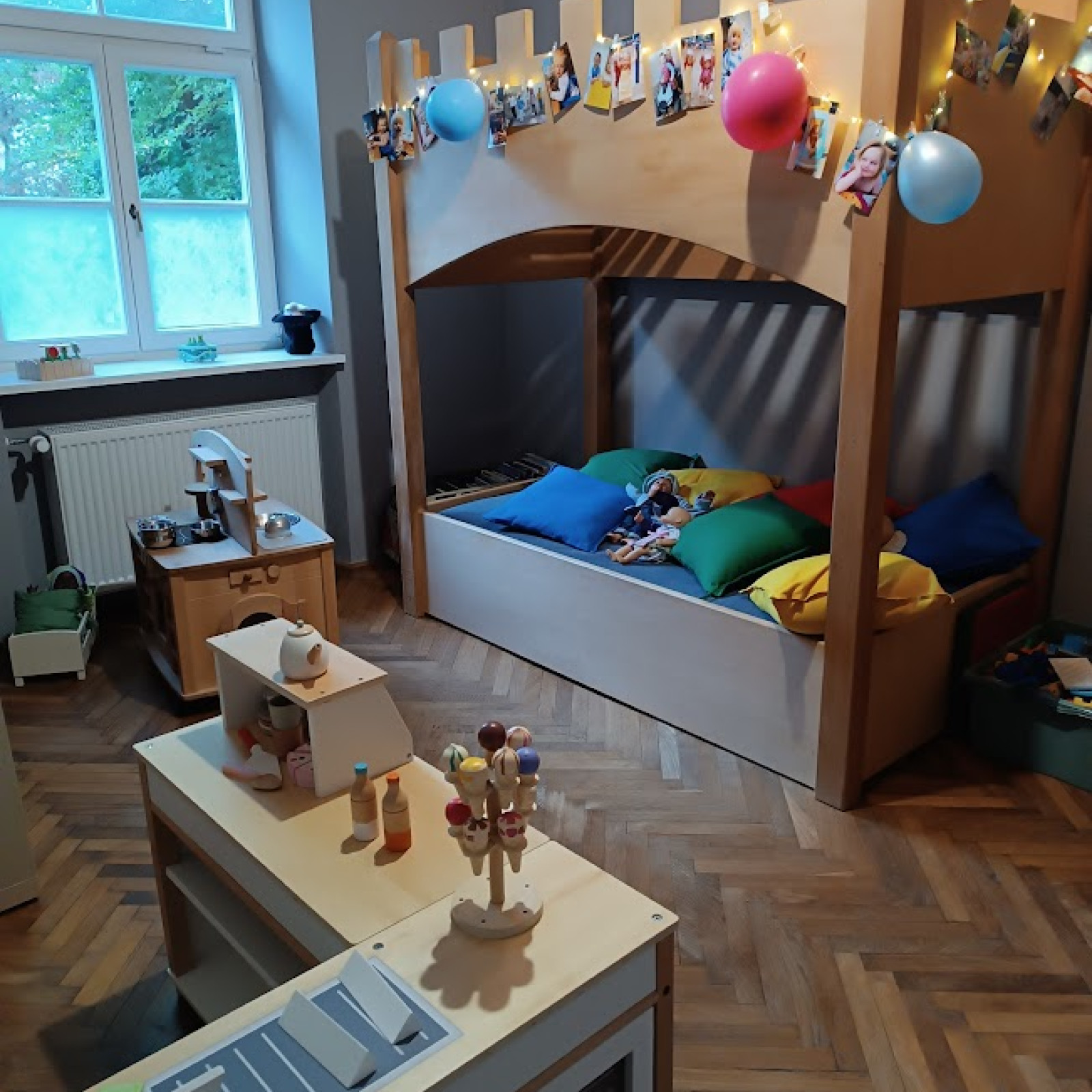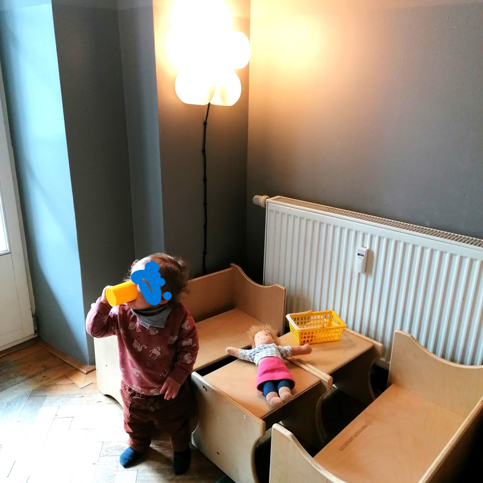 Wir spielen, singen, malen, basteln, kneten, backen, und wir nutzen auch nachmittags meist noch unseren Innenhof, der zum Haus gehört.